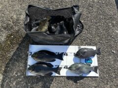 磯釣りでチヌ44㎝・オオモンハタ41㎝・グレ・カツオ・ゲット!