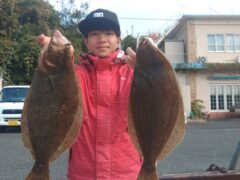 泳がせ釣果 ヒラメ竿頭3匹、 船内9匹釣れました