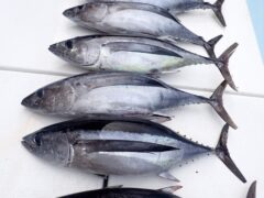 トンジギ釣果 ビンチョウ5kg 3本 カツオ2本