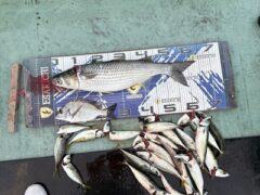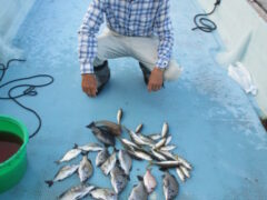 2025.10.02鈴木様 カセ釣り 餌:オキアミ、泳がせ 20-25cmチヌ13枚
