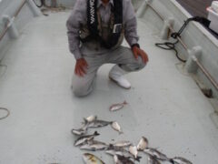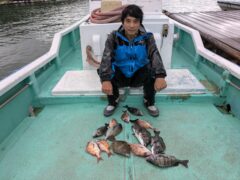 2025.09.12浅生様 48センチ〜5枚 餌サナギ、オキアミ キビレ1枚