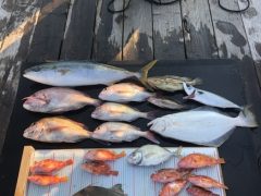 ジギング便釣果 ワラサ 真鯛 5枚 ヒラメ ホウキハタ アヤメカサゴ サバ他