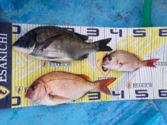 戸田さん チヌ:38cm マダイ:44cm 頭 4尾 エサ:サナギ