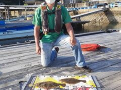 橋本さん チヌ 27㌢・31㌢ 2枚 ヒラメ 35㌢・40㌢ 2枚 エサ シラサ…