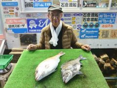 高橋さんがチヌ44cmとマダイ49cm