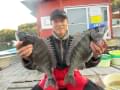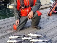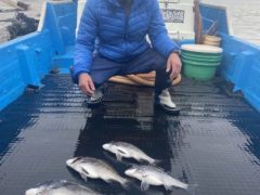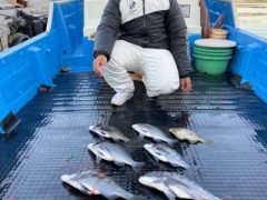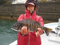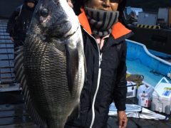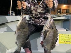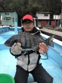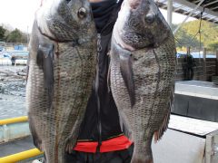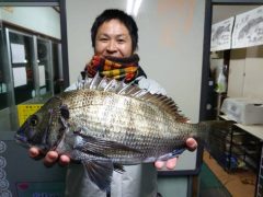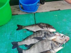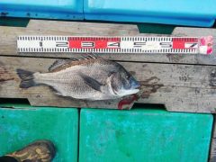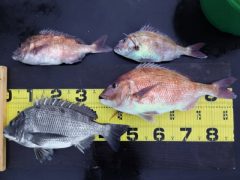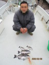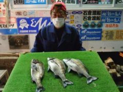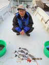 山田さんがチヌ 46㎝頭 3匹、真鯛 餌はオキアミ