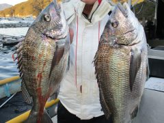 増田氏 チヌ 39cm. 44cm 各 1匹 餌オキアミ/サナギ