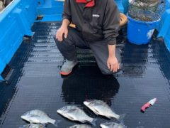 野中氏 チヌ 38~44㎝ 5尾 エサ オキアミ・サナギ・ボケ