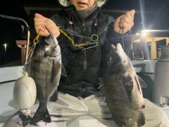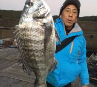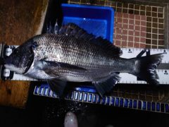橘さん、黒鯛37センチ頭に3枚、餌はオキアミ