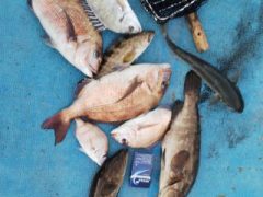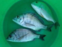 くえ、真鯛、キビレ、ボラ。餌はすべてサナギ! オキアミ、ぼけ、カメジャコはすぐフ…