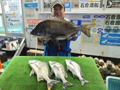川田氏 チヌ37㎝ ハマチ、ハタ
