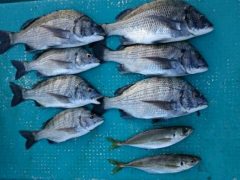 飯山さんがチヌ 35㎝頭 5匹、真鯛、カワハギ