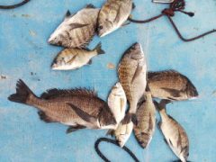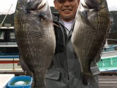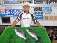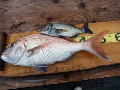 矢野さんは7.5号筏でマダイ59㎝とチヌ