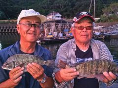 中瀬さん(写真 左) チヌ 38~42cm 6匹 エサ サナギ…