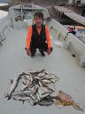 金子さんがチヌ頭 48㎝ 12匹、ハタマス 40㎝、ハマチ 6匹