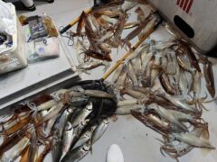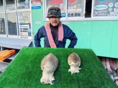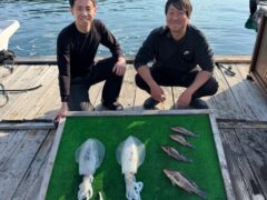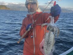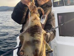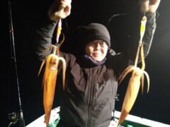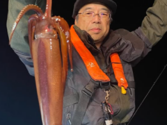 船外機ボートでカミナリイカをゲット。