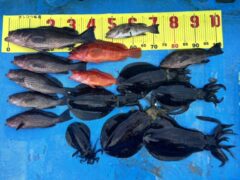 レンタルボート釣果 ワラサ・アオリイカ・アカハタ 他