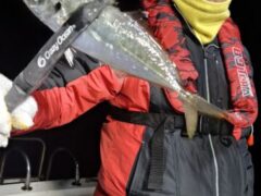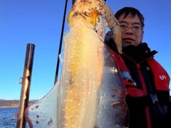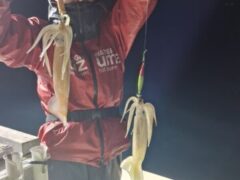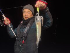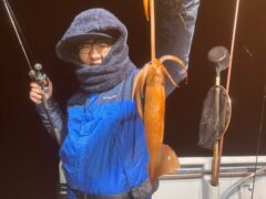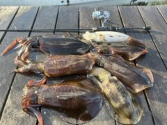 船外機ボートでカミナリイカをゲット。