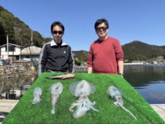 レンタルボート釣果 エギでアオリイカ胴長26cm頭に4杯。