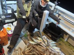 ティップラン、近海便釣果 ポイントついてすぐにトリプルヒット