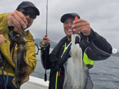 ティップラン釣果 初挑戦の方が多かったですがみなさんなんとかイカの顔はみてもらえ…