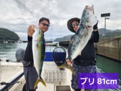 レンタルボート釣果 ワラサ70cm、シオ44cm頭に3匹、ツバス39cm頭に2匹…