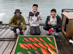 レンタルボート釣果 オオモンハタ49cm頭に7匹、アカハタ37cm頭に12匹