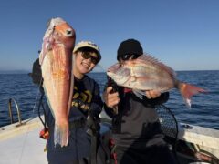 エサ釣り、タイラバ釣果 良型シロアマダイ45㎝を各1匹釣り上げました!