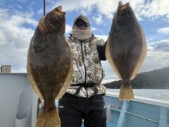 泳がせ釣果 今日はヒラメが竿頭様5枚!4枚が2名様!船中25枚!