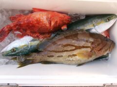 ジギング釣果 ワラサ7本、ハマチ4本、アオハタ、カサゴ