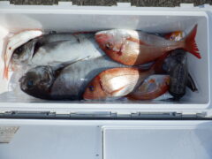 熊野沖釣果 メダイ60~80㎝1~2 5匹 マダイ45~53㎝2~3 7匹 ハマ…