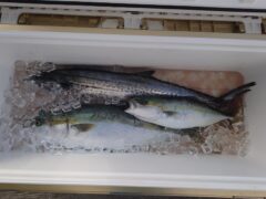 泳がせ釣果 青物の活性があり、ヒラメ、マダイもあり。 皆さんお土産ありました。