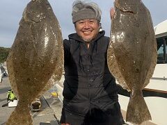泳がせ釣果 ヒラメ 40〜63cm 船中6枚 ワラサ4本