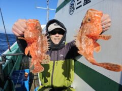 鬼乗り合い釣果 オニカサゴ、25センチ~45センチ(竿頭17尾)