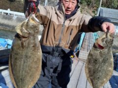 泳がせ釣果 良型混じりでヒラメ11枚釣れました。