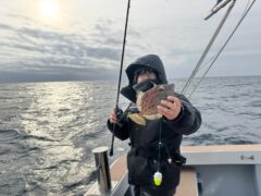 1日バーチカルで写真少ないんですがハチビキやマトウ釣ってくれました