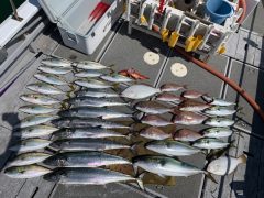近海ジギング便 ハマチ 17本 サワラ1本 真鯛 10枚 ヒラメ 1枚 ガ…