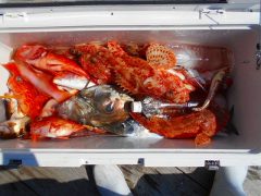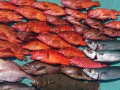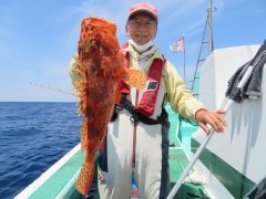 ジギング釣果 午前便では良型の真鯛にマハタ、アヤメカサゴは数釣れてました。
