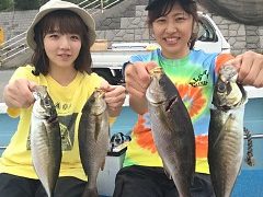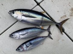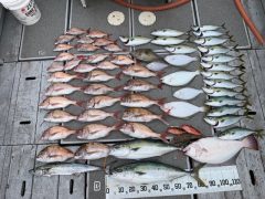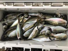 午前便釣果 マアジ、30センチ~47センチ(竿頭45尾) タイ、サバ、等
