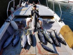キハダ 泳がせ 便釣果。 キハダ 16.7~35.6Kg 9尾・大判カツオ 1尾…