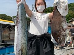 仕立て船釣果 マダイ 35-45cm 6匹 イサキ 25-38cm 27匹 サバ