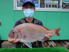 半夜釣りで山田さんがマダイをゲット