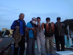 谷さんらが5人がメダイ50~65㎝19匹 レンコダイ25~35㎝15匹 マハタ4…