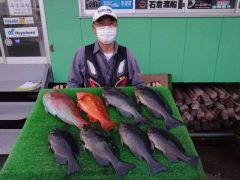 マダイ45~62㎝3匹 マハタ45㎝1匹 イサキ27~33㎝5~7匹 サバ30~…