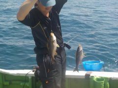 船外機ボートで中村さんがマダイ、アカハタ、ハモをゲット