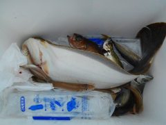 泳がせでヒラメ50~55㎝4匹 キジハタ40~45㎝5匹 ガシ25~35㎝5匹