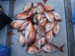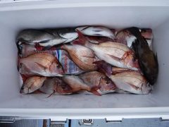 午前マダイ出船 皆さん顔見れてましまがサイズいまいちでした