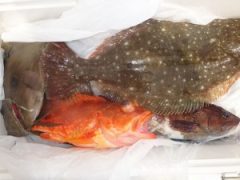 午前便根魚釣果 ホウキハタ(30~50cm)・ヒラメ(50~60cm)・マハタ・…