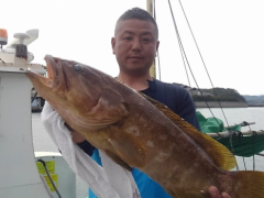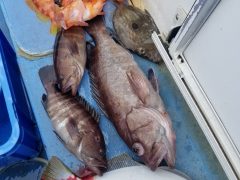 クエが釣れました。他にホ-キハタ、マハタ、アカハタ、ワラサ、オオニベ、カサゴなど…