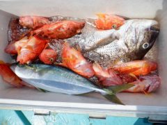 レンタルボート釣果 マダイ max66cm 5枚 アカハタ カサゴ